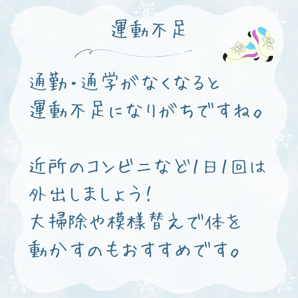 お食事や入浴などで冷え対策をして、まだまだ続く寒い冬を元気に乗り切りましょう☃