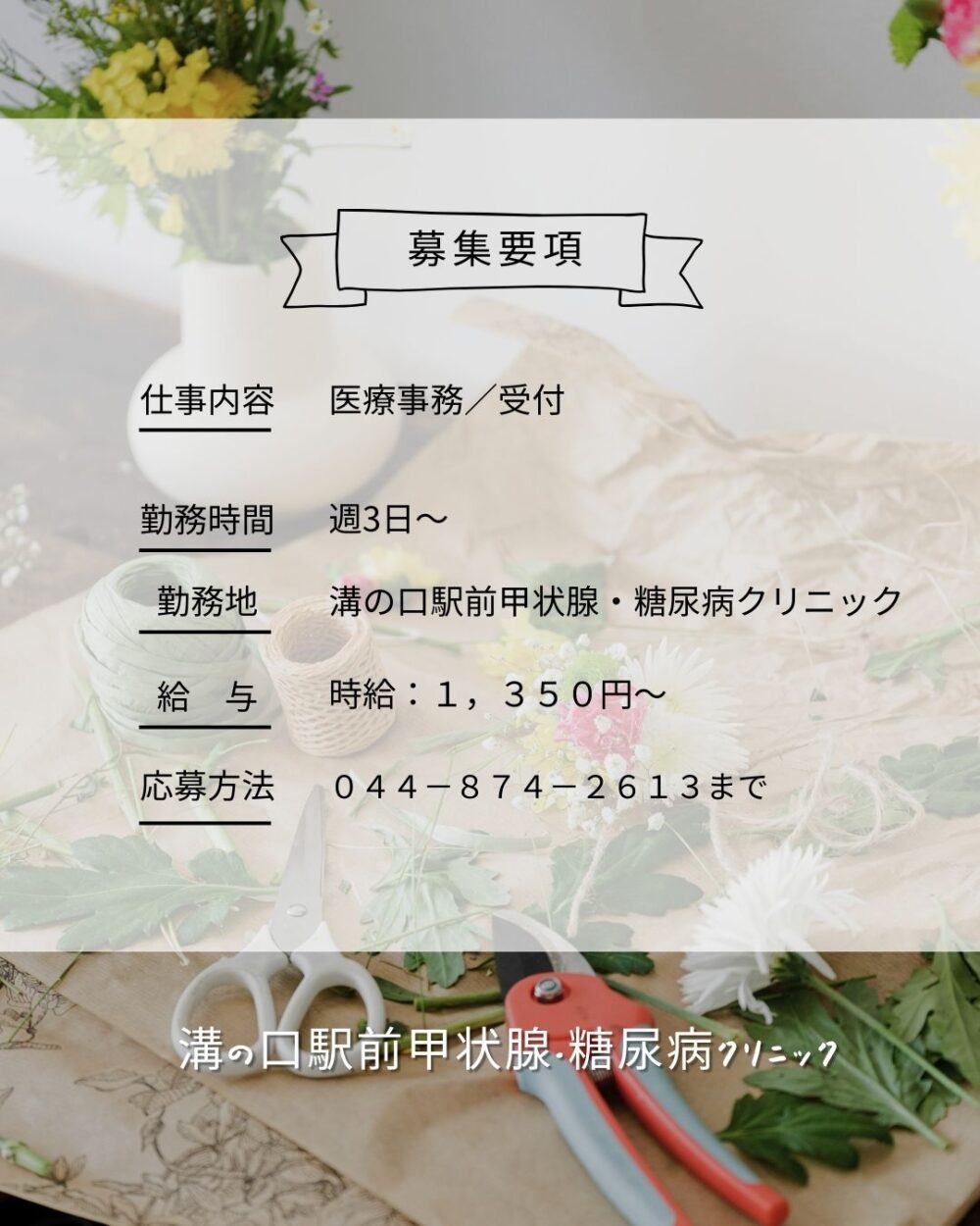 【医療事務】求人のお知らせ